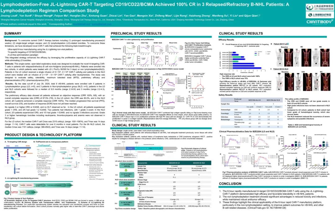 BZE2204是全球首个靶向CD19/CD22/BCMA的三靶点绿色闪CAR-T产品,展现出“ 一药多效、多维适配”的独特优势,已在复发难治性非霍奇金淋巴瘤(NHL)、多发性骨髓瘤(MM)及系统性红斑狼疮(SLE)中开展探索性临床研究,成果显著。