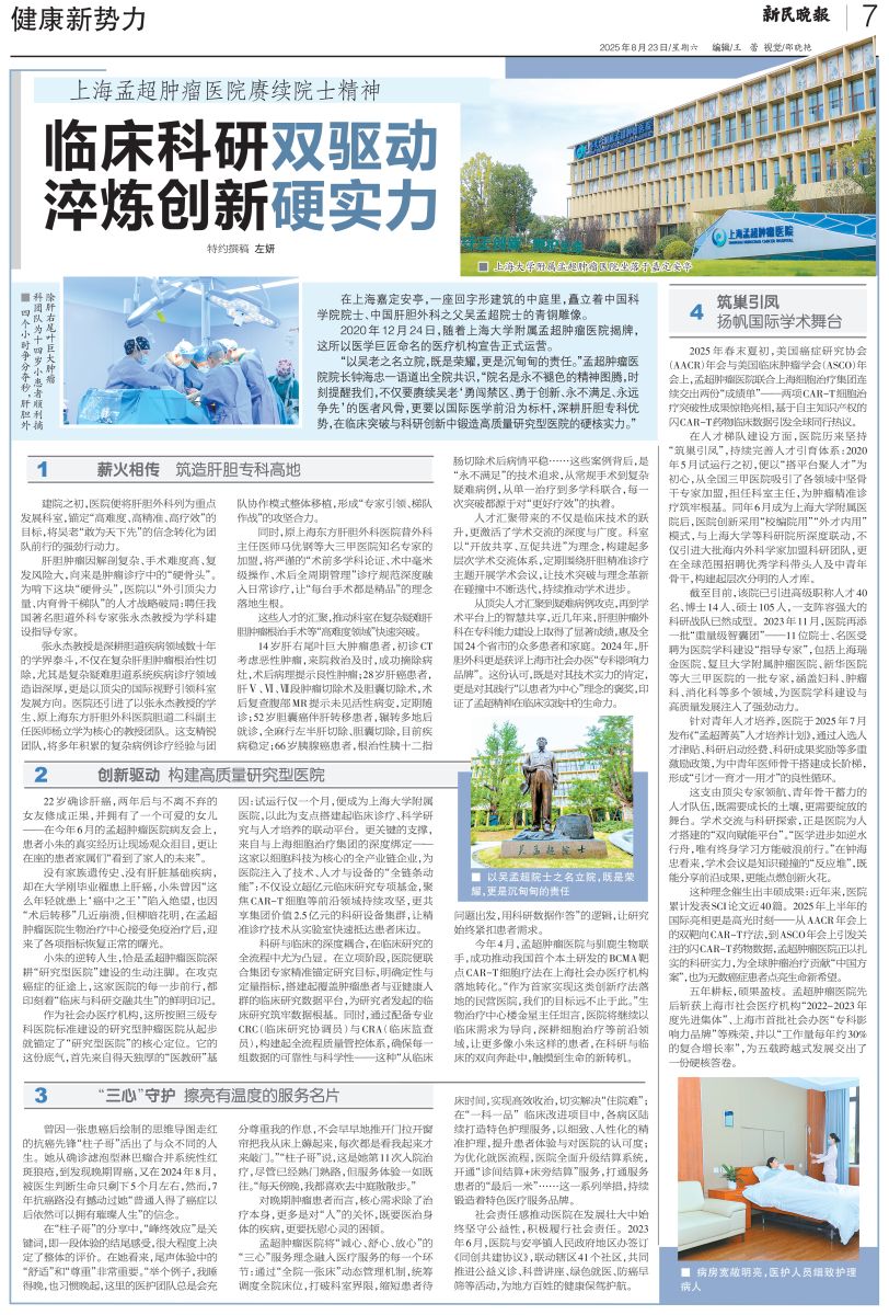 新民晚报报道 | 上海孟超肿瘤医院赓续院士精神 临床科研双驱动 淬炼创新硬实力