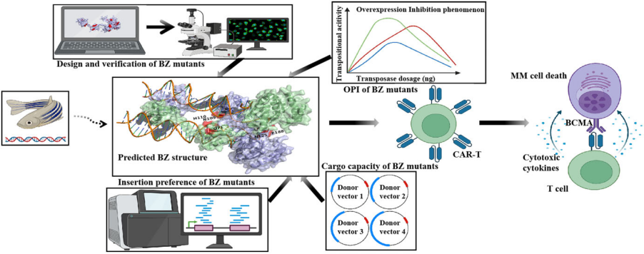 上海细胞治疗集团联合扬州大学宋成义教授团队、上海大学孟超肿瘤医院及上海大学医学院细胞治疗创新研究院,研究针对BZ转座系统(源于斑马鱼)进行精准工程化改造,成功开发出高效、安全升级版 Baize(BZ)的转座子系统,为基因治疗提供了更具潜力的新型递送工具。