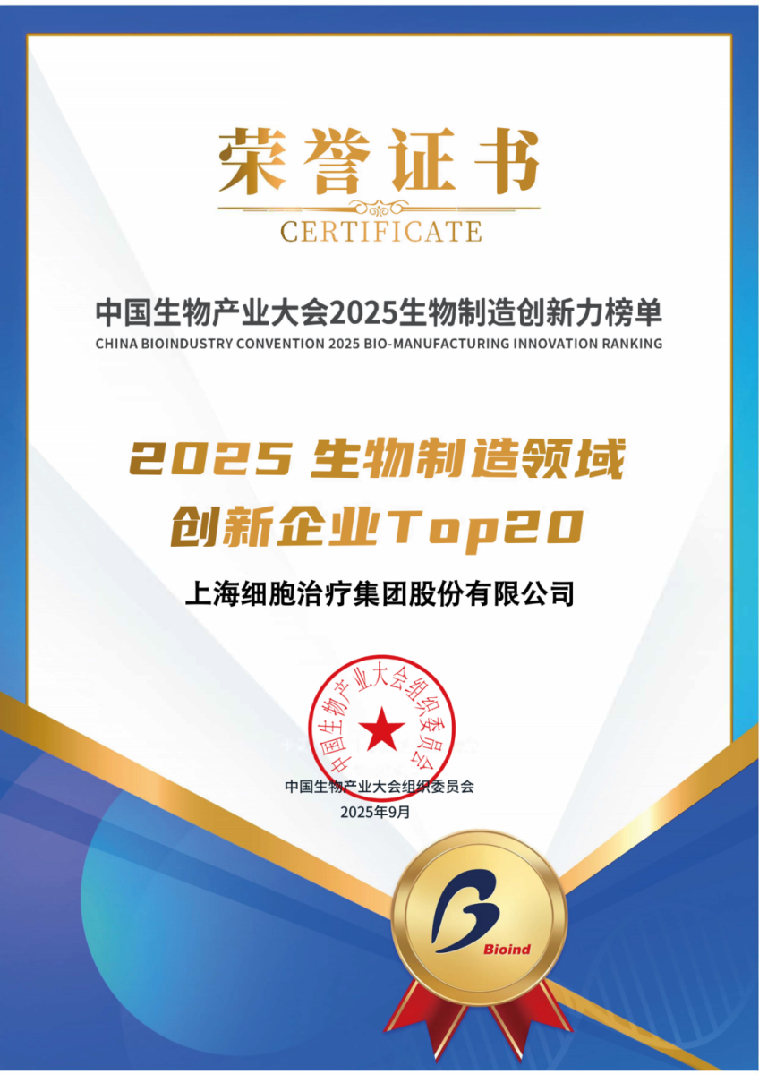 上海细胞治疗集团在2025年收获多项重磅荣誉,每一项荣誉都是对集团创新实力、质量管理与服务价值的最佳印证: